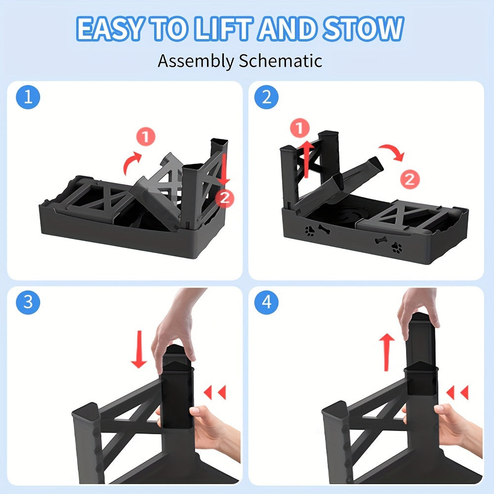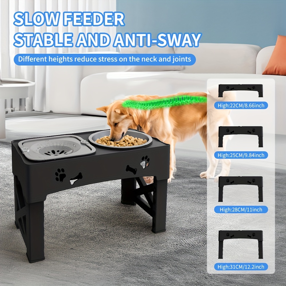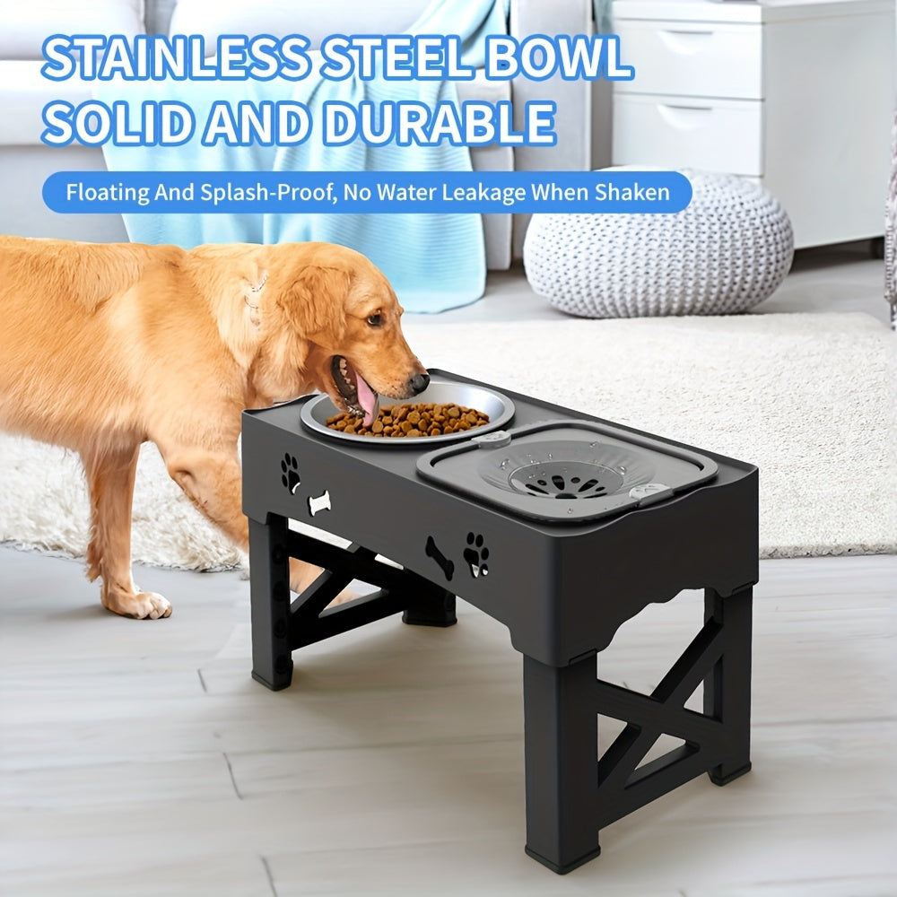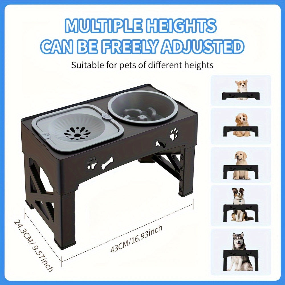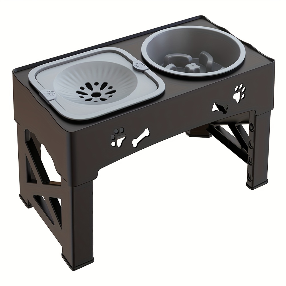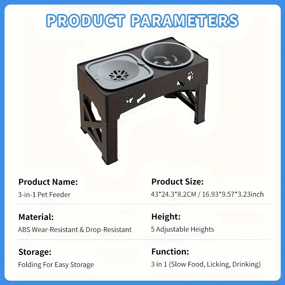 Praktyczna podwyższona miska dla psa lub kota, z możliwością regulacji wysokości, podwójnymi miskami i 3 w 1 funkcją karmienia. Składana i oszczędzająca miejsce – idealna dla zwierząt o różnych rozmiarach i wzroście.