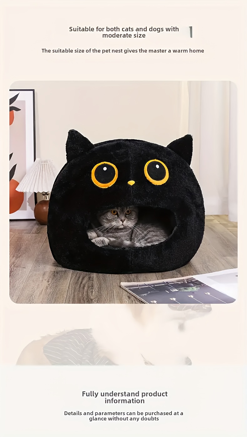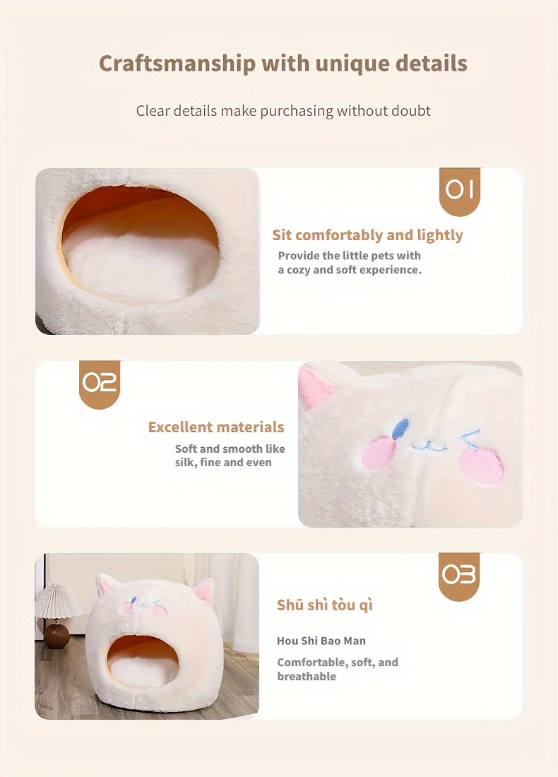 🐱 Stwórz swojemu pupilowi przytulny kącik na chłodne dni! Cartoon Cozy Cave to miękkie i ciepłe legowisko w formie zamykanego domku, idealne dla kotów i małych psów.