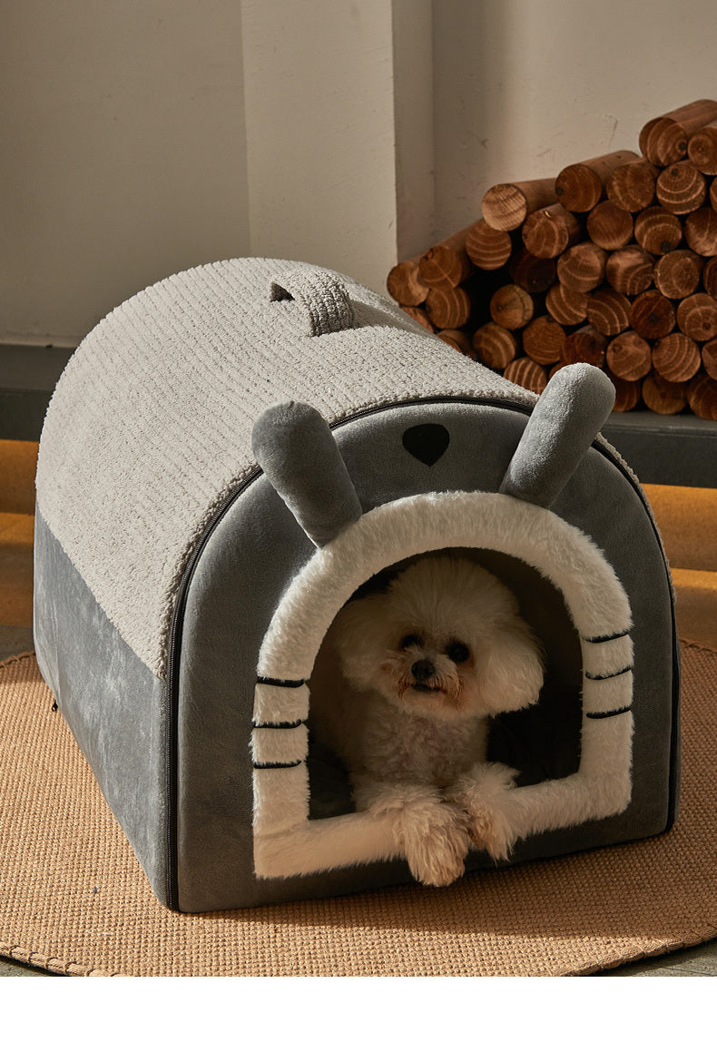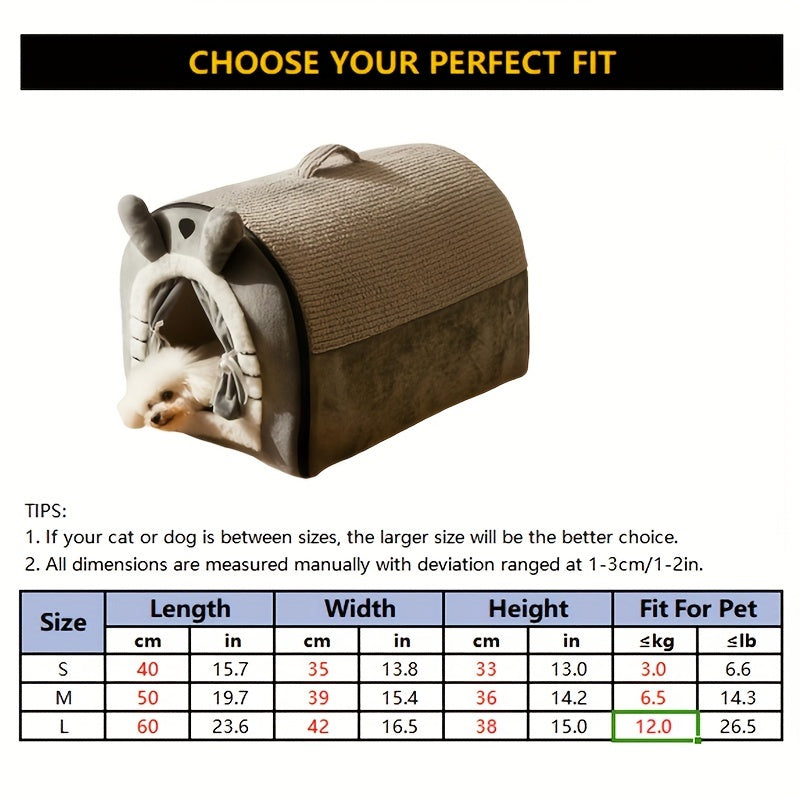 Stylowa i przytulna willa dla psa lub kota z wygodnym uchwytem do przenoszenia, całkowicie zamkniętym designem, ciepłą izolacją i łatwo zdejmowaną, nadającą się do prania tkaniną. Idealna do użytku wewnątrz domu, na każdą porę roku.